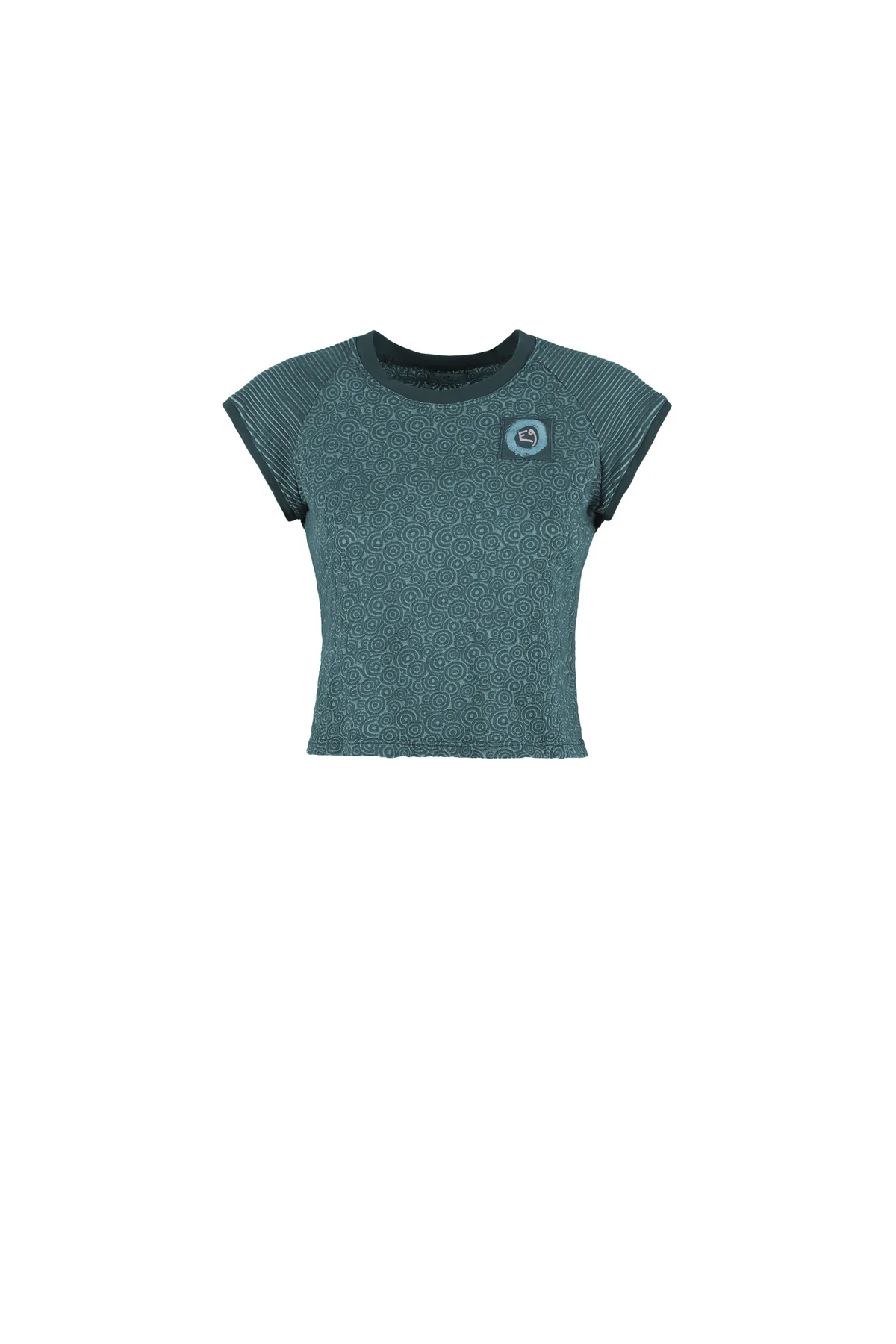 Camiseta corta de jacquard que combina diseño contemporáneo con la artesanía italiana.