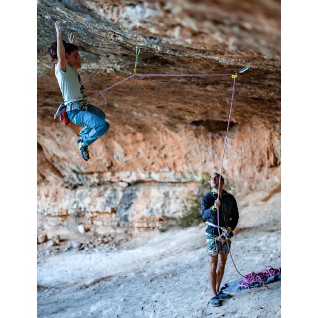Innovador sistema para compensar el peso del escalador cuando aseguras en escalada deportiva.